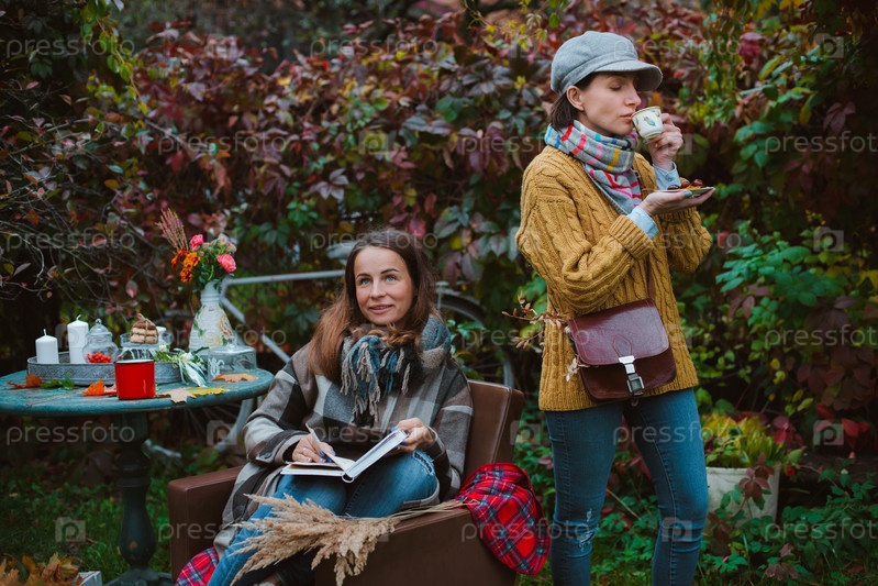Молодая женщина в романтической осенней модной одежде