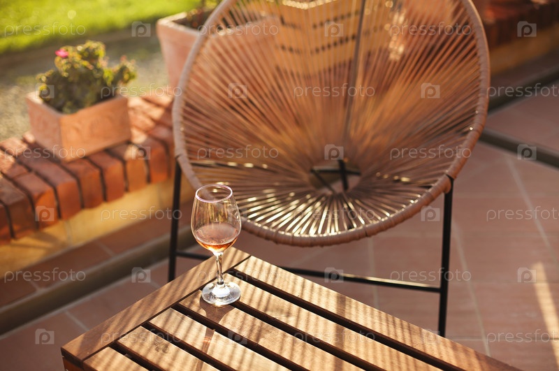 Бокал на кирпичной границе во дворе
