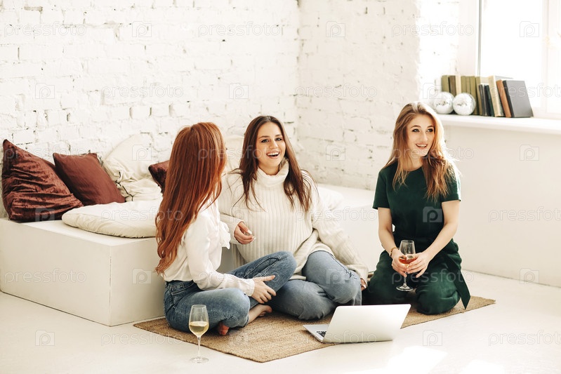 Молодые подруги используют ноутбук дома