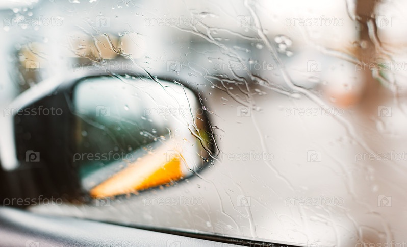 Капли дождя на лобовом стекле автомобиля, заблокированное движение