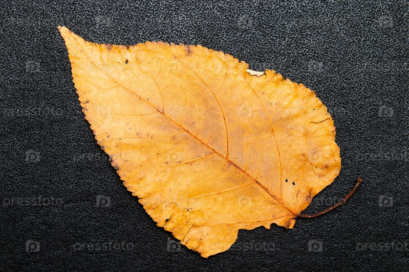 Лист на черном фоне изоляция вид сверху оранжевый коричневый желтый