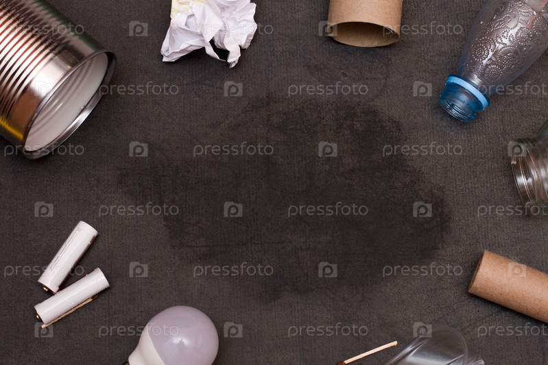 Много мусора на черном фоне для переработки заботиться о природе копией пространства