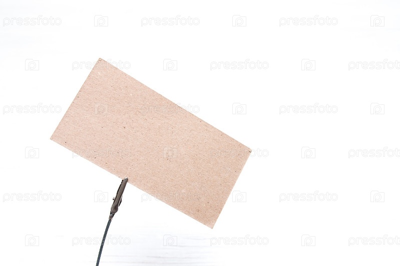 Картонная этикетка на прищепке для вашего текста на белом фоне