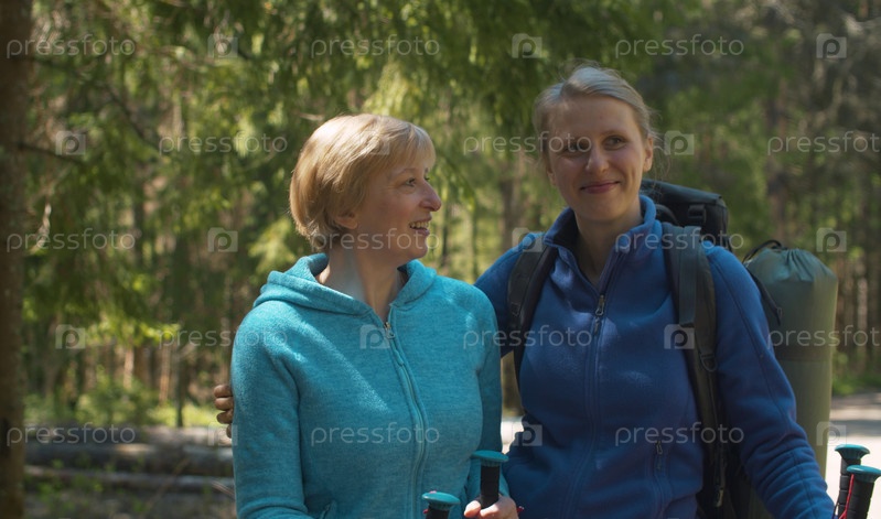 Молодая женщина и с матерью в лесу