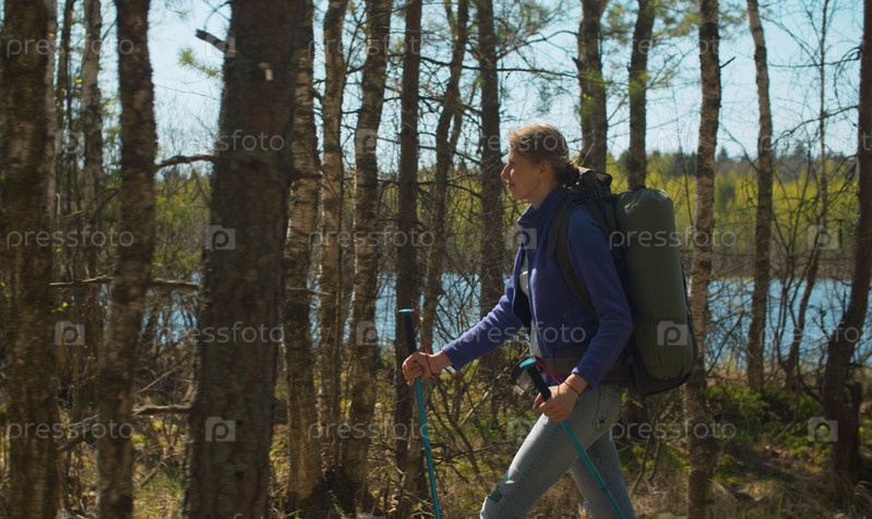 Молодая женщина с трекинговыми палками