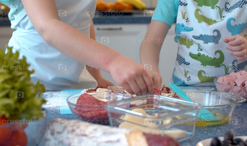 Сестра и брат готовят пиццу