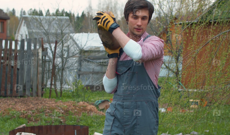 Молодой человек с большим камнем в руках