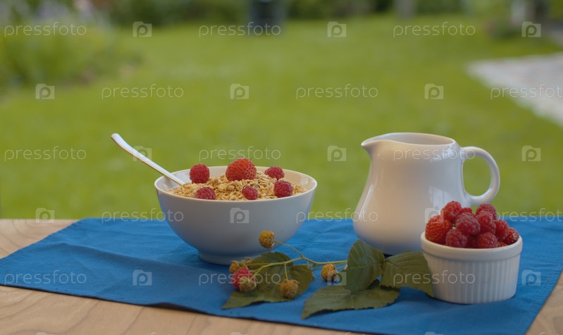 Чаша мюсли с малиной