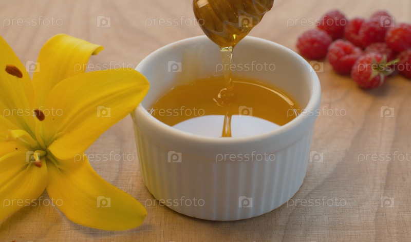 Мед льется из медовой ложки