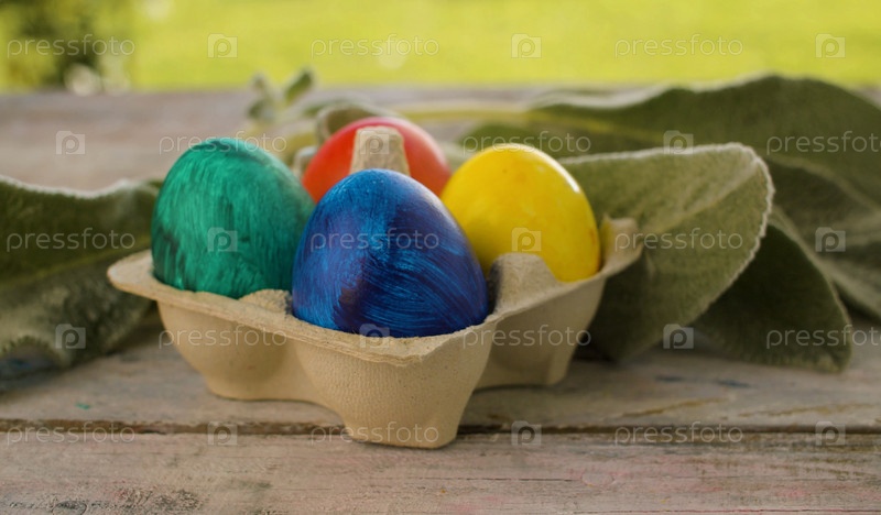 Разноцветные крашеные пасхальные яйца