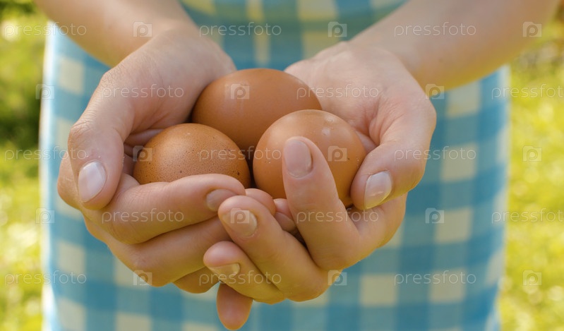 Куриные яйца в женских руках