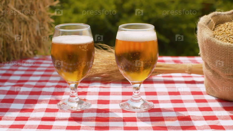 Два стакана пива и зерна