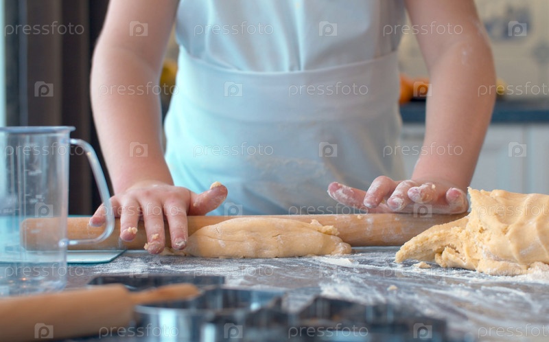 Девушка раскатывает тесто
