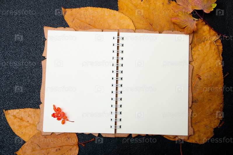 Пустой блокнот на сухих осенних листах желтые цвета красный оранжевый природа задний фон вид сверху копировать пространство список дел