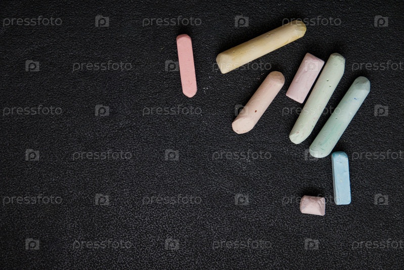 Цветные мелки на черном фоне, пространство для копирования, вид сверху