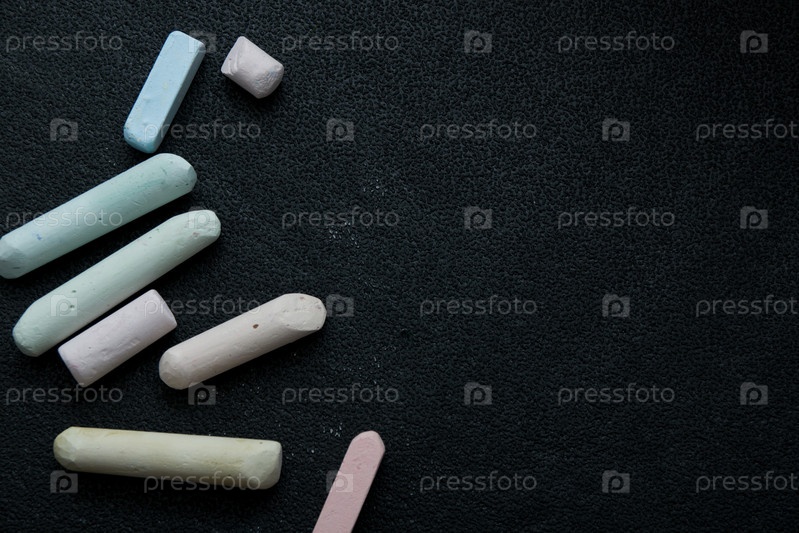 Цветные мелки на черном фоне, пространство для копирования, вид сверху, макро, непрозрачный