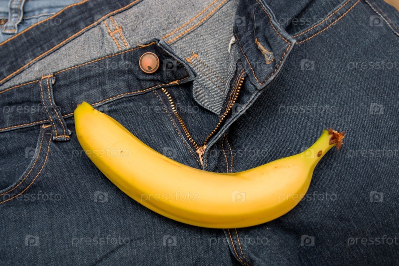 Желтый банан лежит на молнии синие джинсы вид сверху текстура