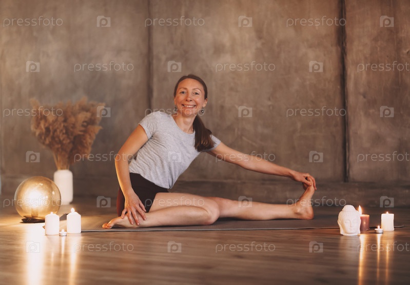 Молодая женщина медитирует вечером