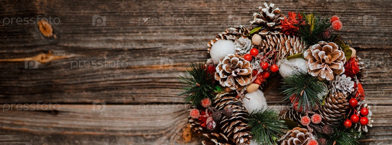 Новогодний венок из ели и елочные украшения