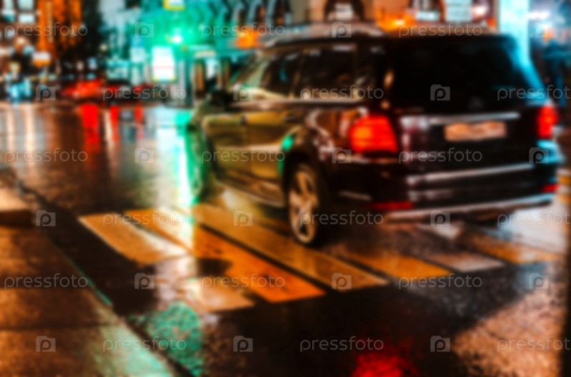 Мокрый ночной город улица дождь Боке отражение яркие разноцветные огни лужи тротуар Автомобиль