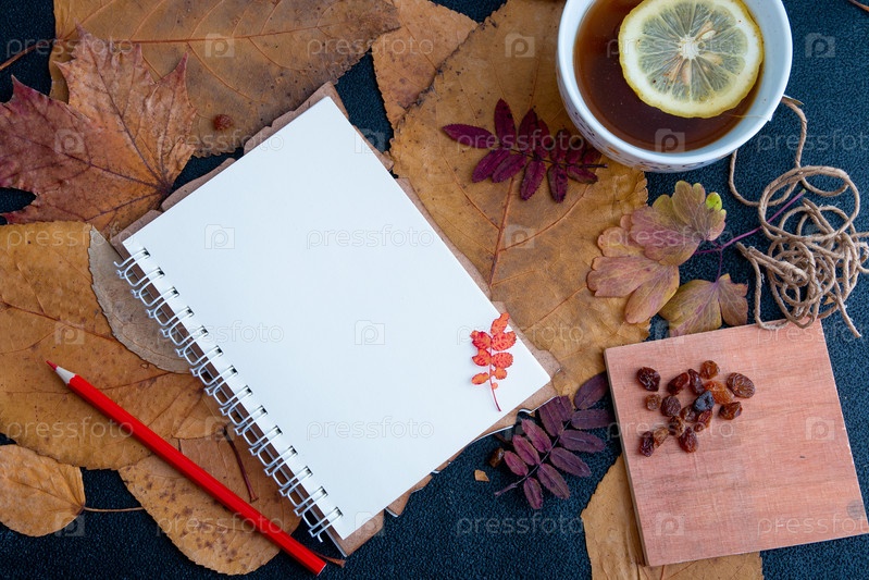 Осенние листья и блокнот