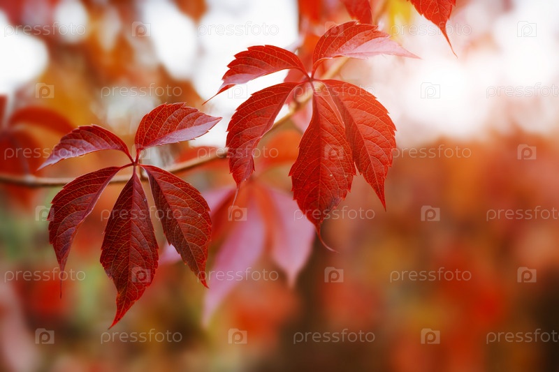 Осенний фон с красочными красными и желтыми листьями вьюнка с размытым свободным пространством