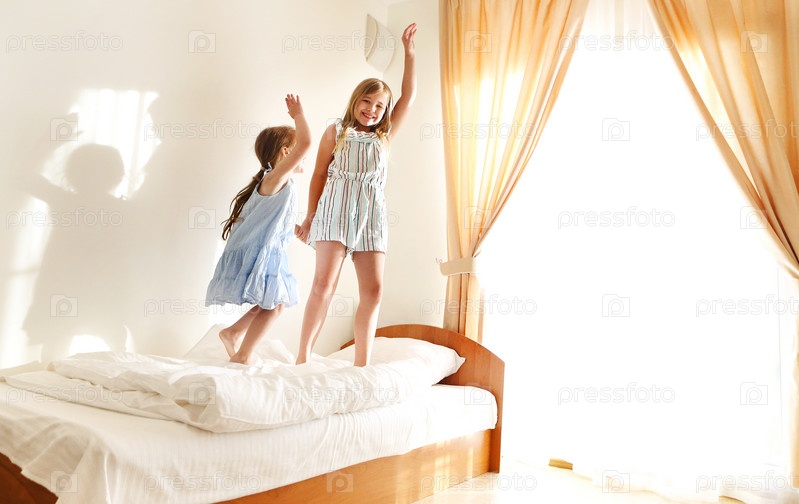 Две милые беззаботные сестрички в повседневной одежде играют в детской комнате