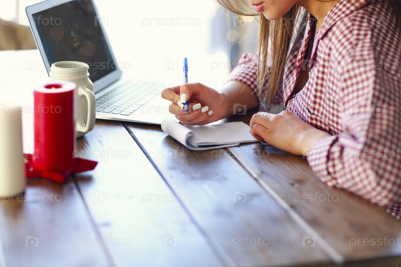 Женщина-фрилансер делает заметки дома