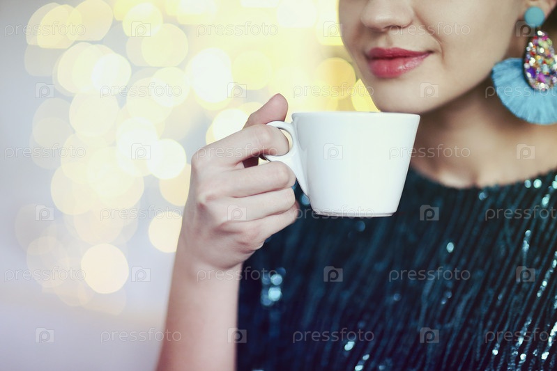 Девушка наслаждается запахом горячего напитка