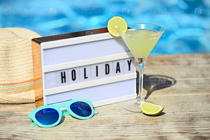 Легкий почтовый ящик, шляпа, солнцезащитные очки и коктейль Дайкири с лаймом