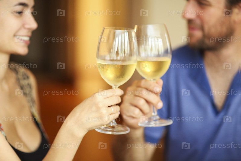 Довольная пара во время даннера в ресторане