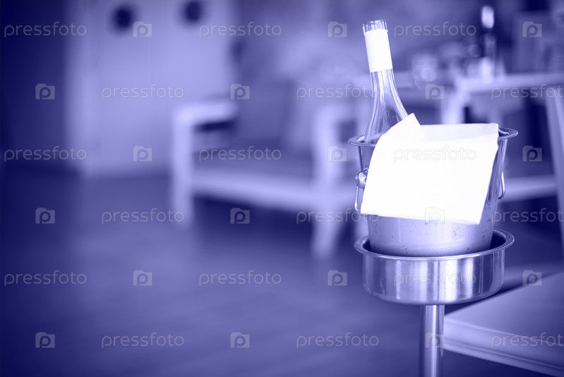Бутылка белого вина в ведерке со льдом