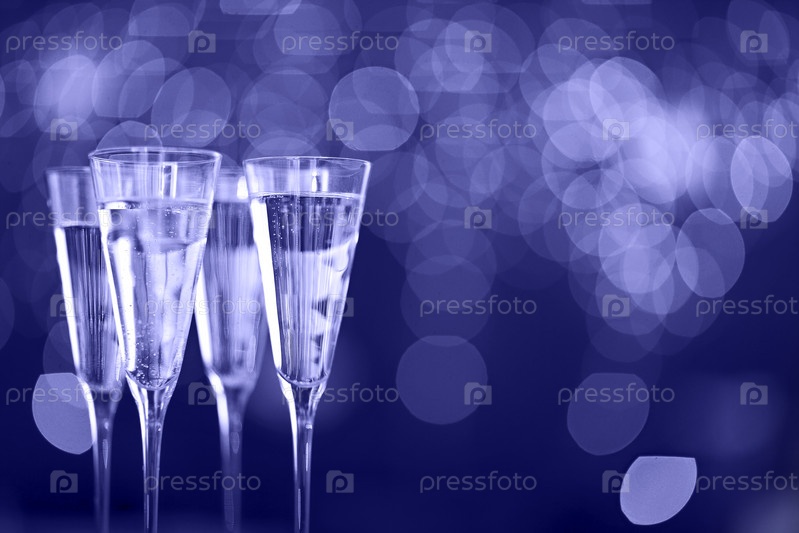 Бокалы для шампанского на фоне огней