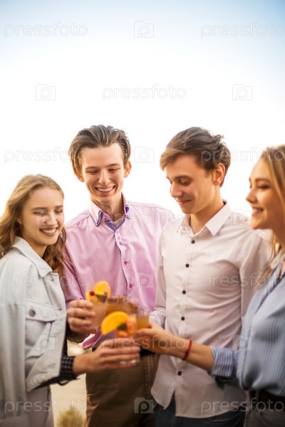 Портрет счастливых друзей, пьющих коктейли вместе