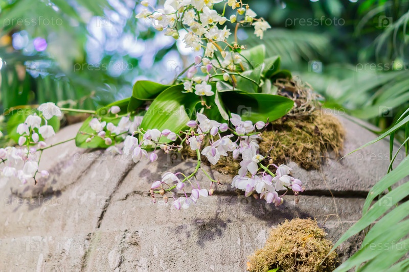 Ветка экзотического цветка орхидеи крупным планом