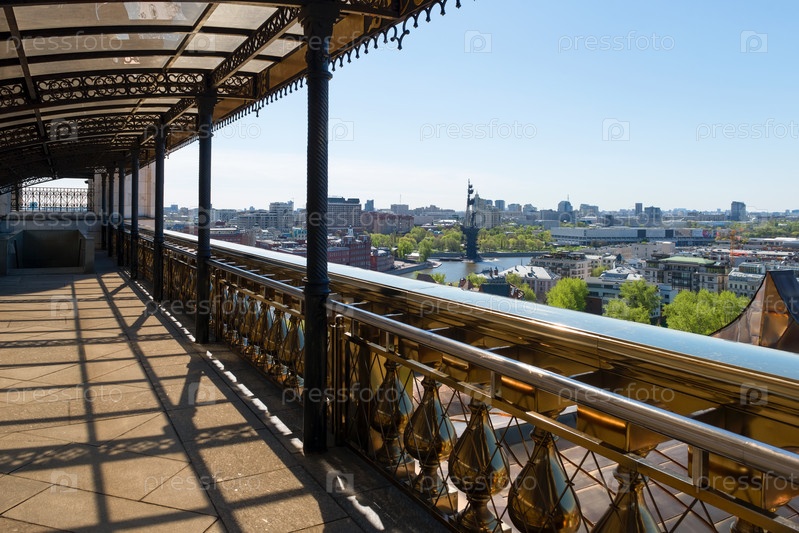 Вид со смотровой площадки Храма Христа Спасителя в солнечный весенний день