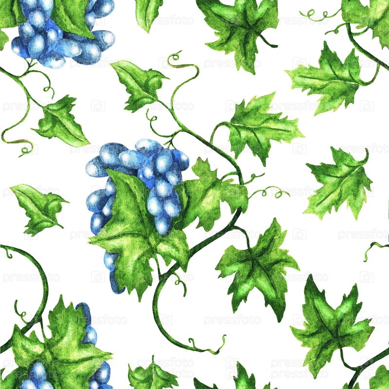 Гроздь винограда. Бесшовный узор. Акварель (3)