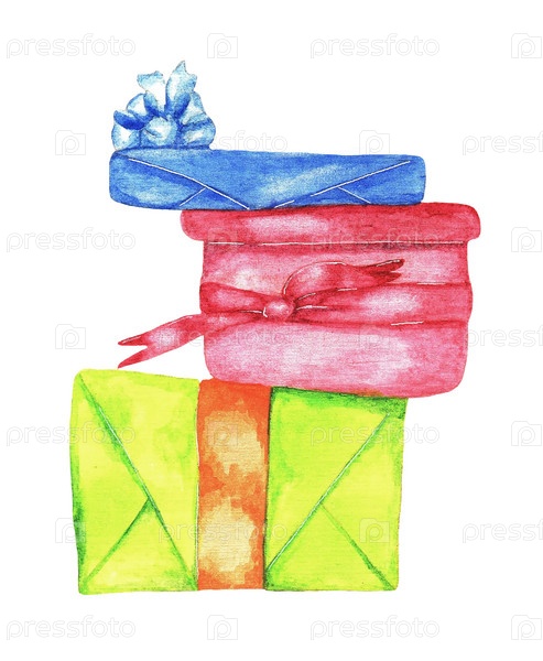 Стопка подарков, акварель (4)