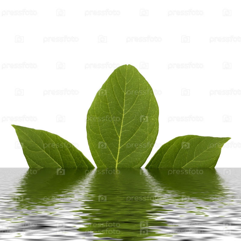 Натуральный зеленый свежий лист, трилистник с множеством полос с эффектом затопления на белом фоне