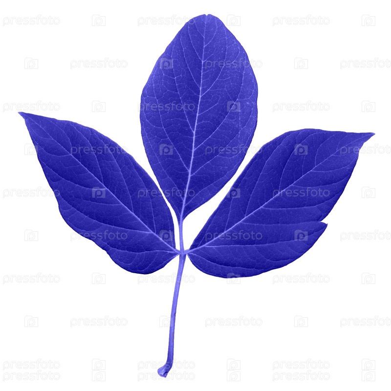 Свежий лист натурального синего цвета со стеблем, трилистник с большим количеством полос, выделенных на белом фоне
