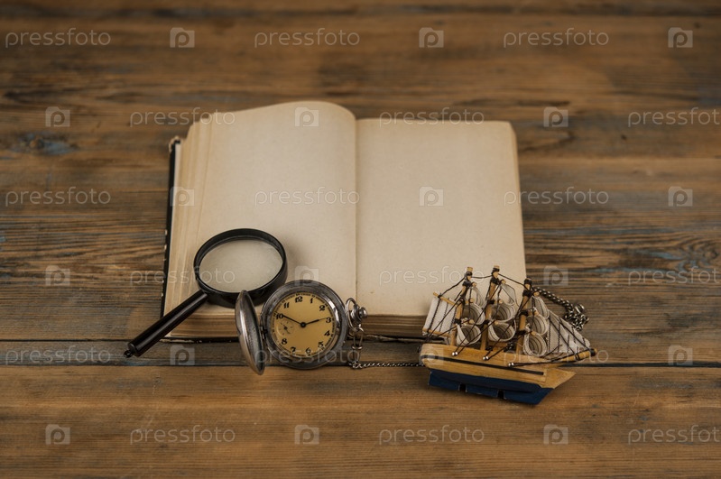 Старые винтажные книги и часы