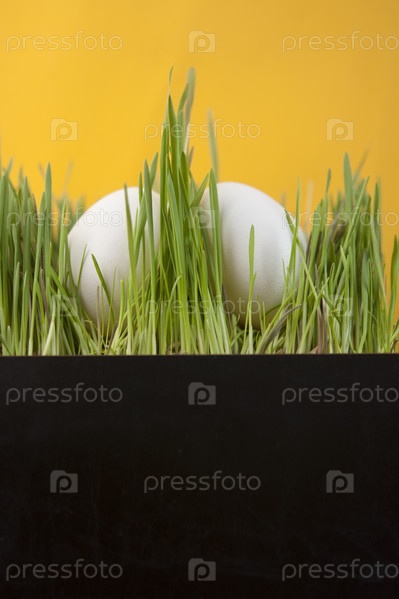 Группа из двух свежих яиц на траве. Символ Пасхи