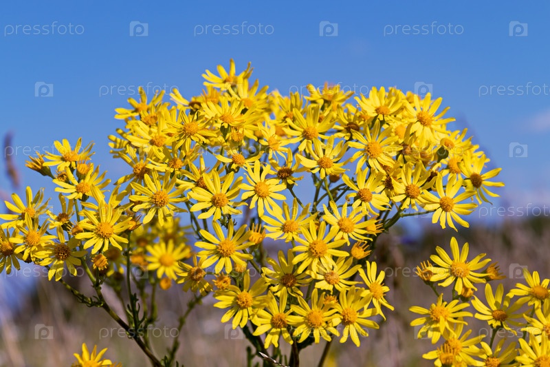 Желтые цветы Senecio vernalis, Восточный обыкновенный, крупный план