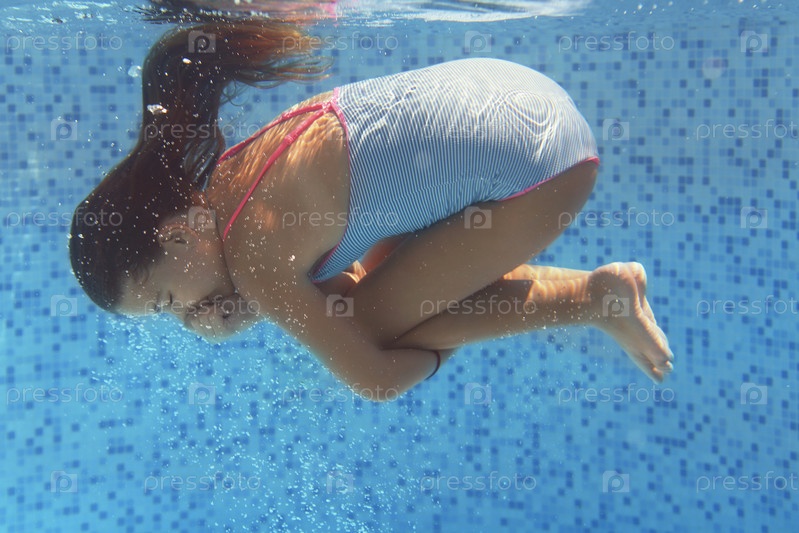 Маленькая девочка плавает под водой