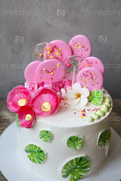Праздничный торт с рисунком из листьев монстеры. Вдохновение для дня рождения в тропиках