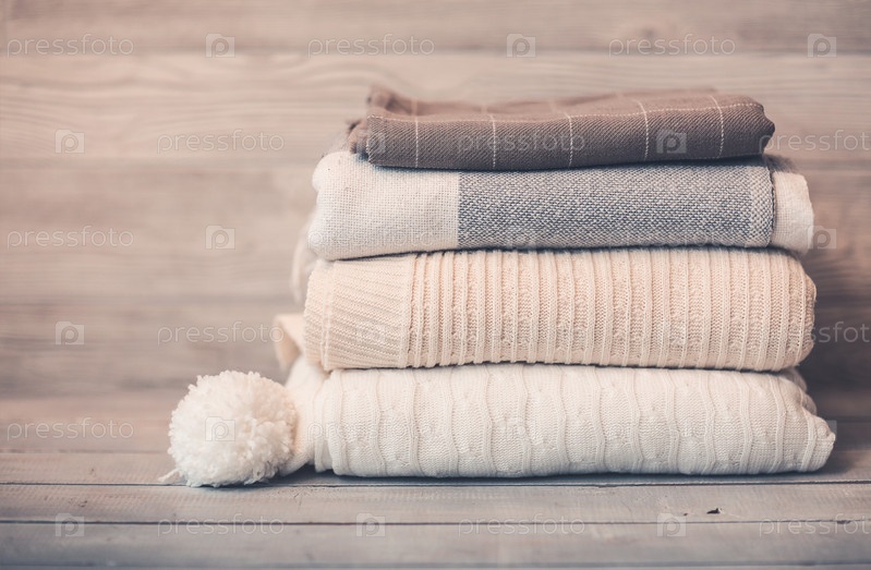 Стек уютного трикотажа в зимнее время