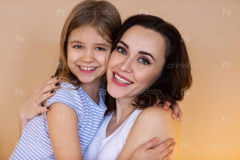 Прекрасная мать и дочь тесно обнимаются