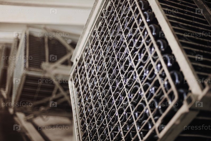 Бутылки шампанского в процессе ремюажа