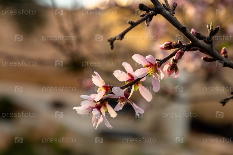 Розовые миндальные цветы на дереве, Испания зимой
