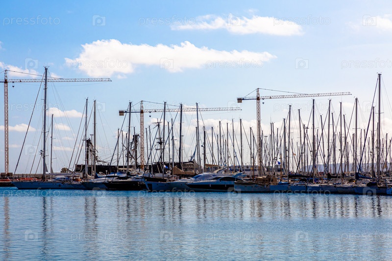 Белые яхты в пристани на средиземноморском побережье